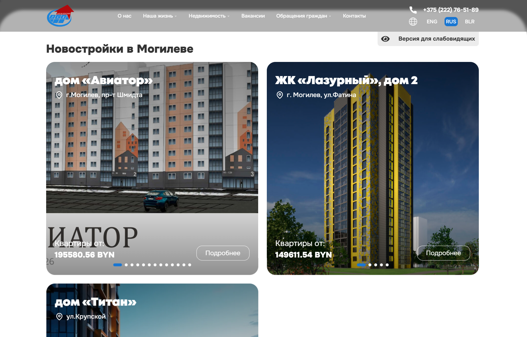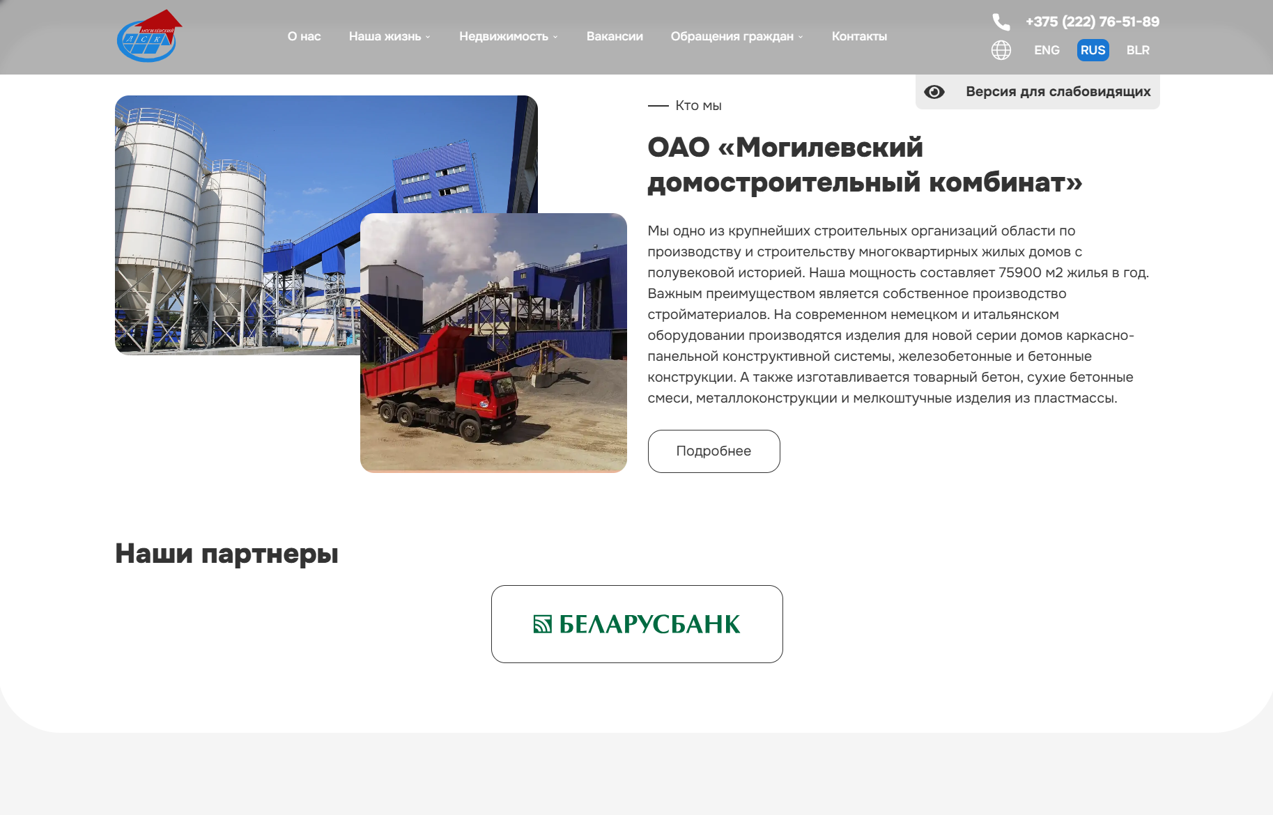ДСК — крупнейшая строительная организация Могилёва. У компании был устаревший сайт, не отражающий масштаб и имидж бренда. Требовалось создать современный ресурс с удобной навигацией, актуальной информацией и рабочими заявками.